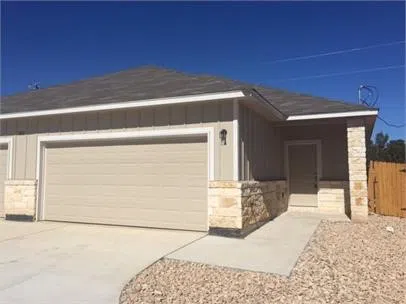 2016 construction in Liberty Hill! 3 bedroom/ 2 bath, single-story duplex unit. Hard flooring in the Living Room/Kitchen, washer/dryer hookups, ceiling fans, 2-car garage and fenced back yard. Minutes from public schools, and walking distance to community parks, public library, and charming downtown Liberty Hill! Pet Friendly!
