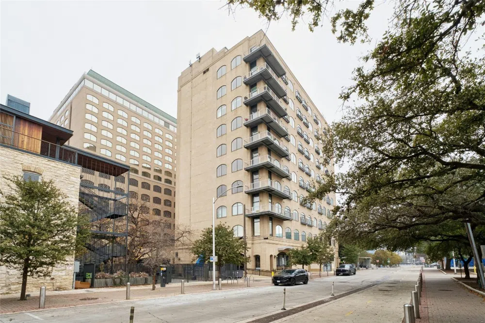 Discover a truly one-of-a-kind urban retreat in the heart of downtown Austin, where sophistication meets vibrant city living. From your private Juliet balcony, enjoy breathtaking views of iconic landmarks like Frost Tower and the Capitol. This elegant condo seamlessly blends timeless architectural charm with modern amenities, creating a space that is both unique and functional. Towering 12-foot ceilings and two stunning arched windows fill the home with natural light, while the open living area offers a welcoming atmosphere perfect for relaxation or entertaining. The sleek kitchen is equipped with stainless steel appliances and solid surface countertops, ensuring style and practicality for all your culinary adventures. A reserved parking space in a secure garage provides unparalleled convenience, making downtown life even easier to navigate. As a resident, you'll benefit from included features like a refrigerator, washer, and dryer, and the opportunity to elevate your lifestyle further with optional access to Hilton amenities for a monthly fee. Indulge in a rooftop pool, state-of-the-art fitness center, and luxurious spa, all just steps away from your front door. Located in the heart of Austin's most dynamic neighborhoods, you'll find Rainey Street, the Waterloo Greenway, and the scenic Town Lake trails within walking distance. Additionally, the newly opened Whole Foods and Target at Plaza Saltillo ensure all your shopping needs are effortlessly met. With quick access to I-35, you'll enjoy seamless connections to everything Austin has to offer and beyond. Schedule your showing today to experience the best of downtown living and make this extraordinary condo your new home!
